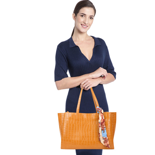 Kroko Vegan Leather 3 Compartment Tote Bag - Yellow