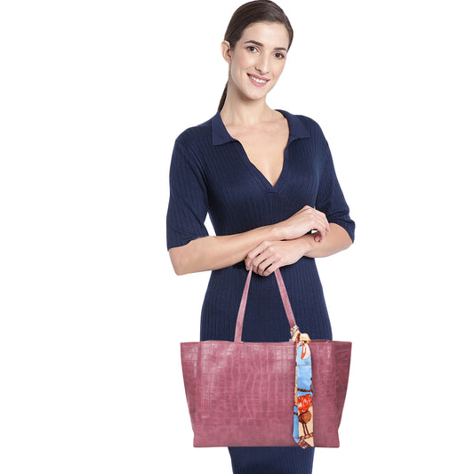 Kroko Vegan Leather 3 Compartment Tote Bag - Purple