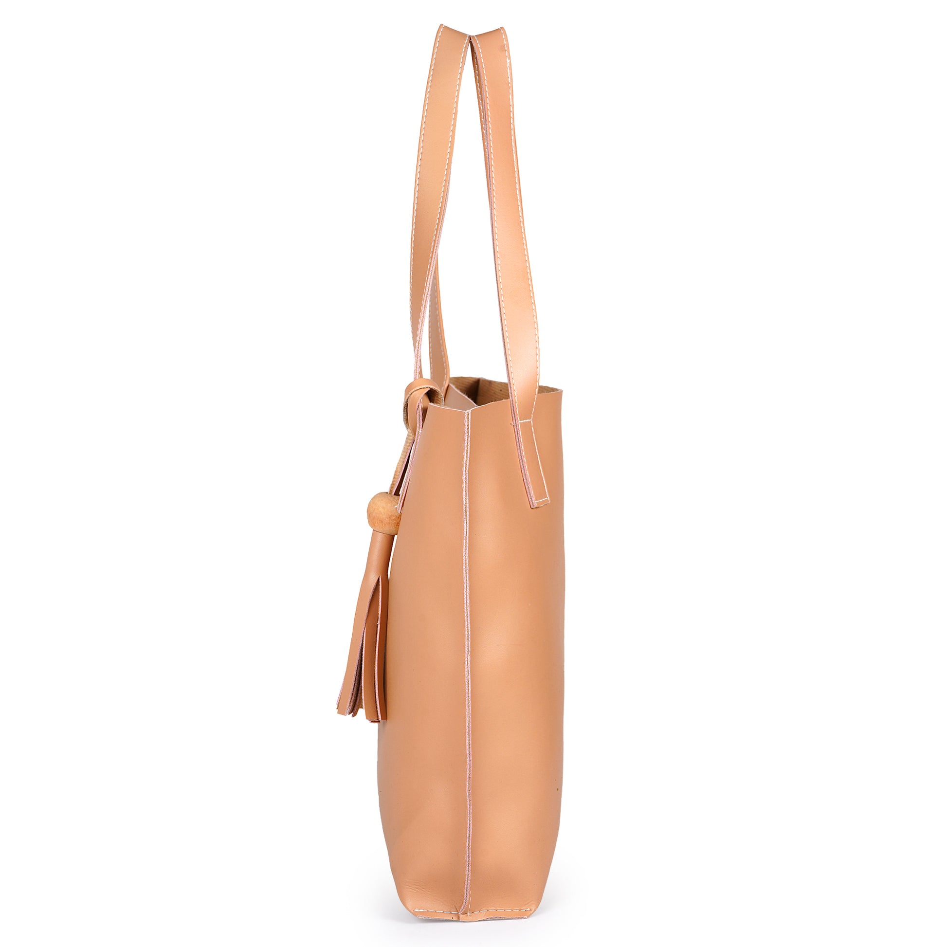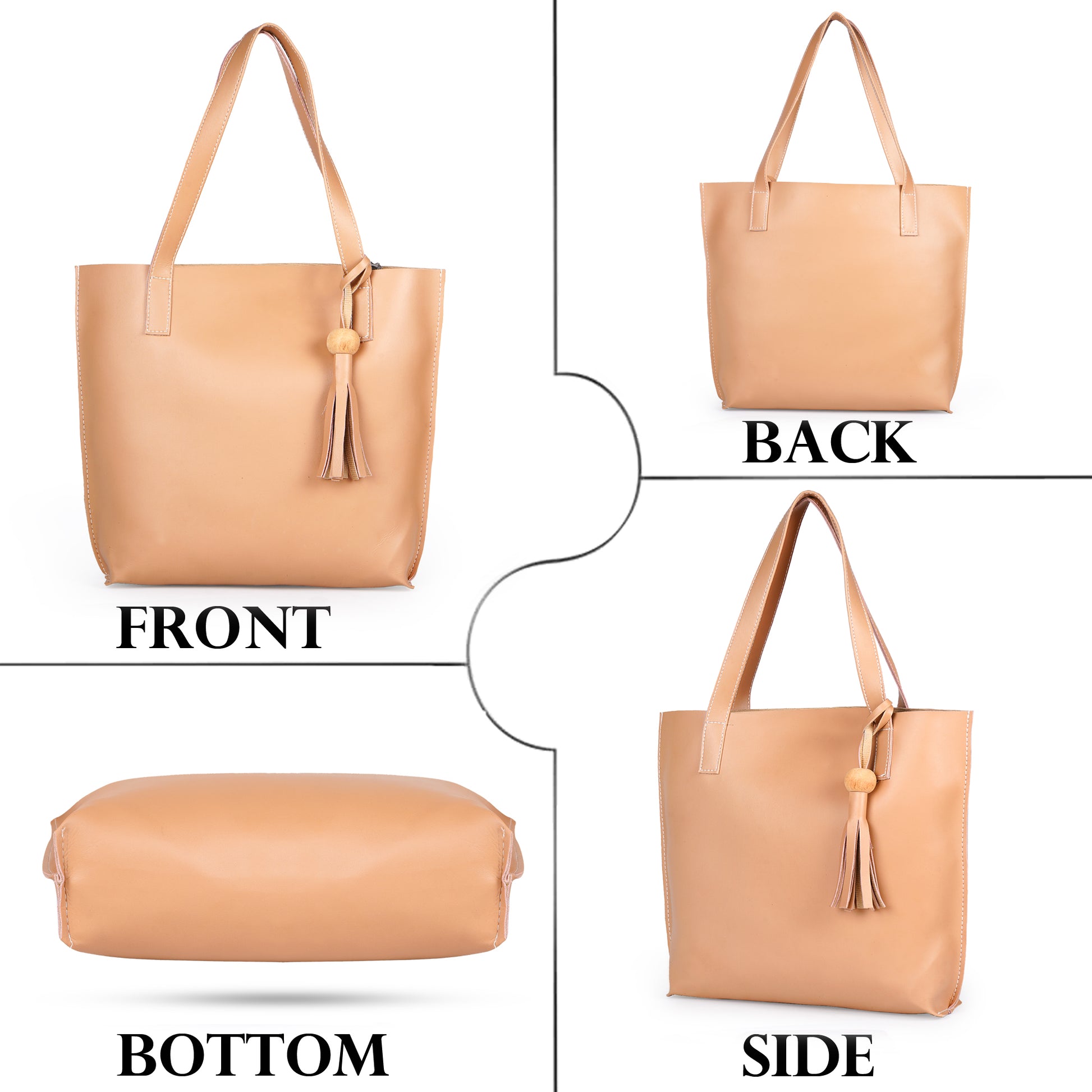 Introducing the Aliza Vegan Leather Shopper Tote Bag in Cream - A0019CREAM, where style meets sophistication. This tote bag is the epitome of formal elegance. With its solid Cream color and open tote design adorned with fringe, it's a statement piece that effortlessly complements your professional or chic ensemble.