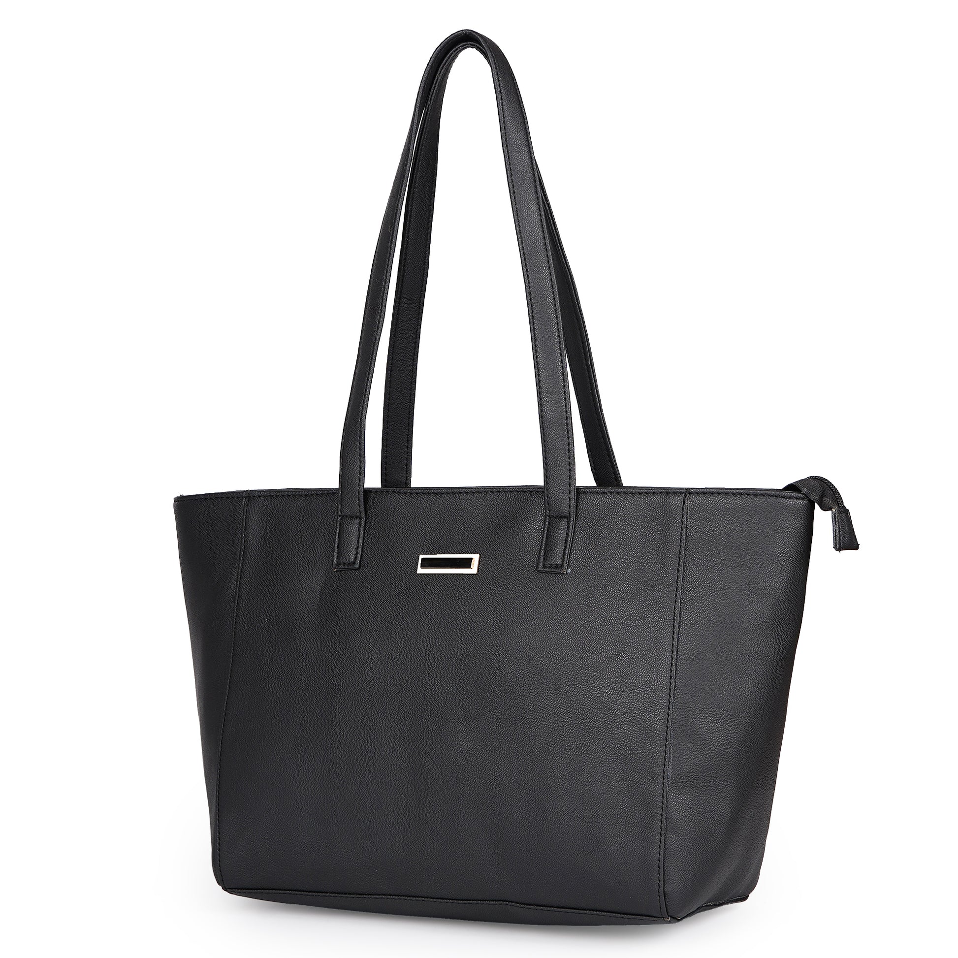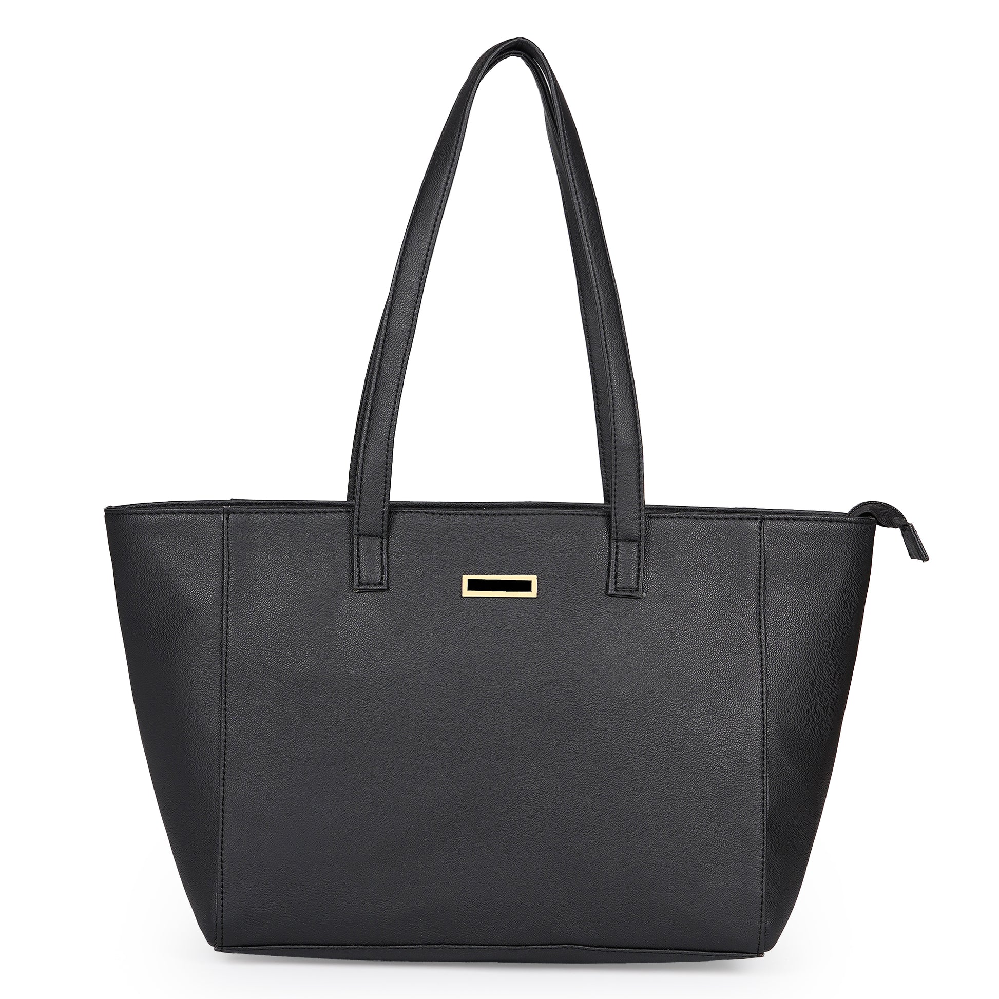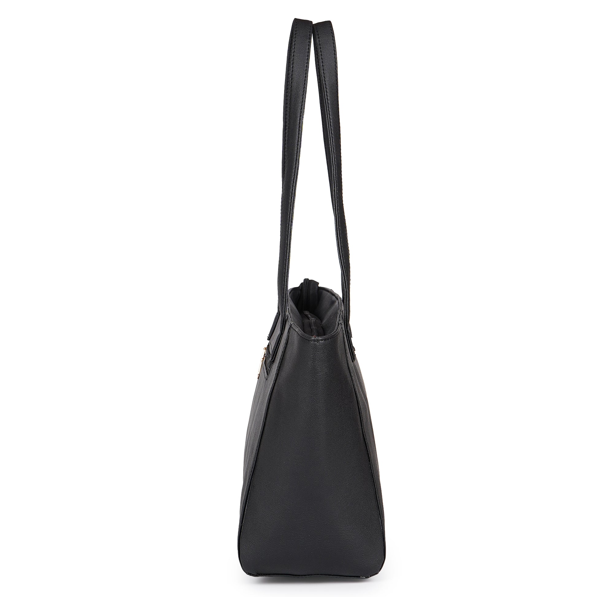 Aliza Elegance Office Tote Bag Black Vegan Leather Handbag- A0022BLACK