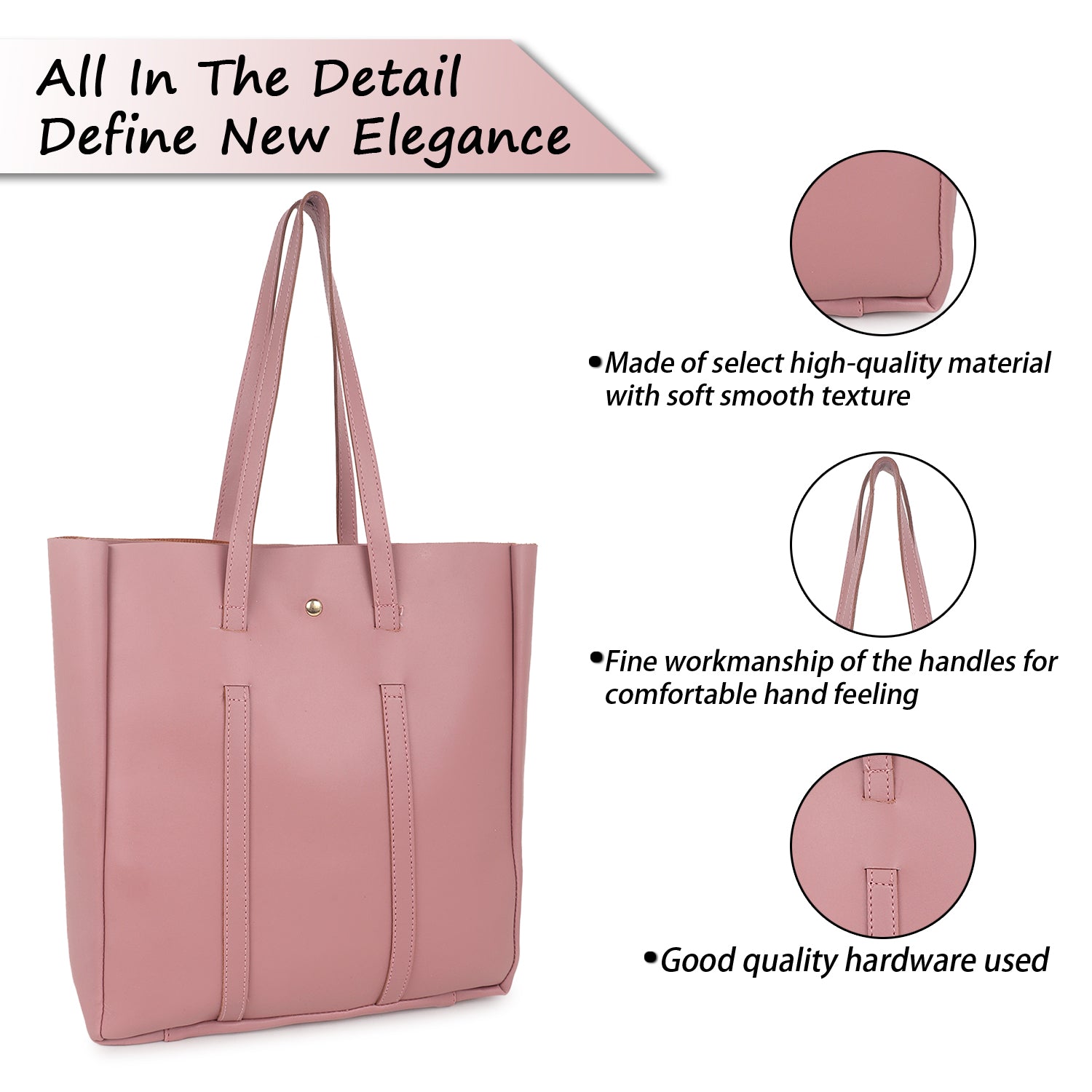 Aliza Stella Tote Bag with Double Shoulder Handle - Pink