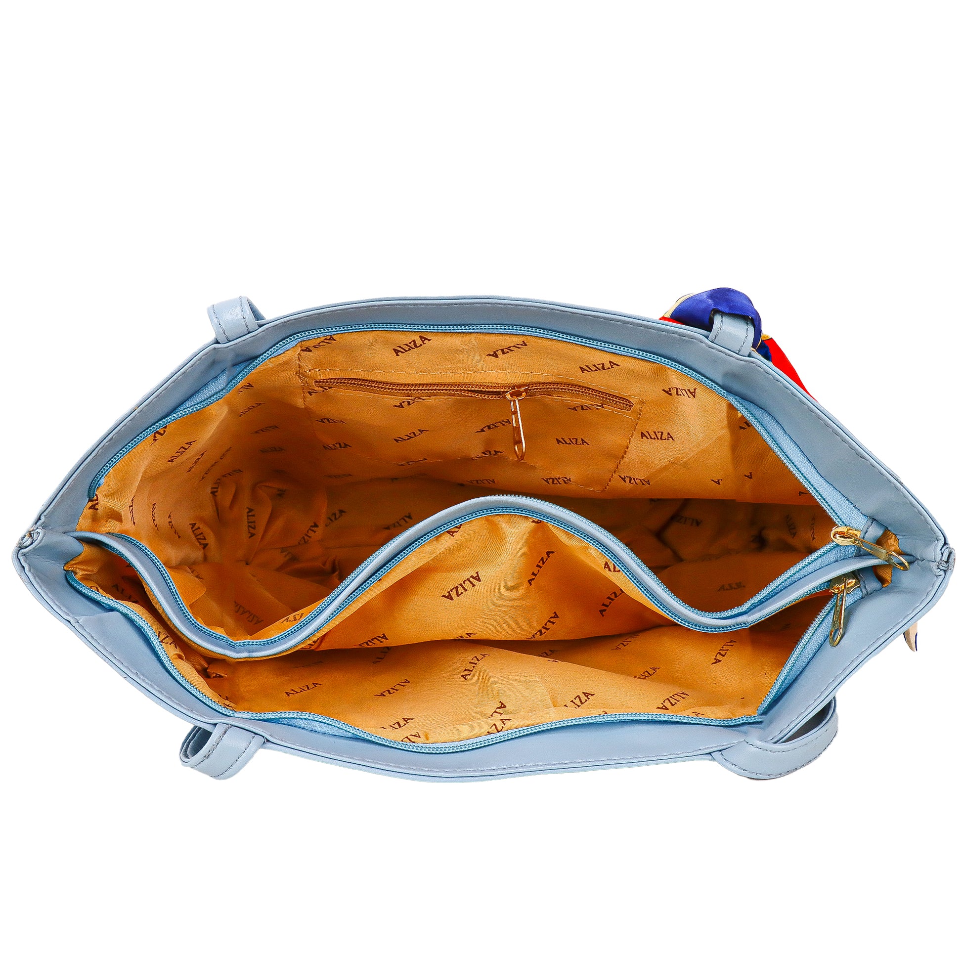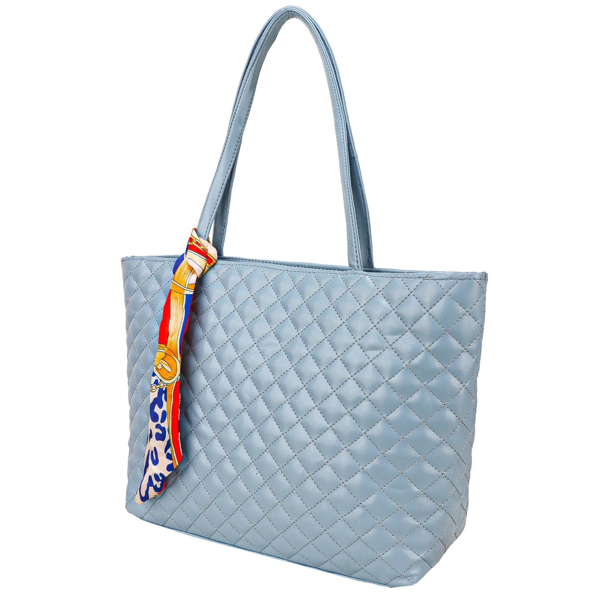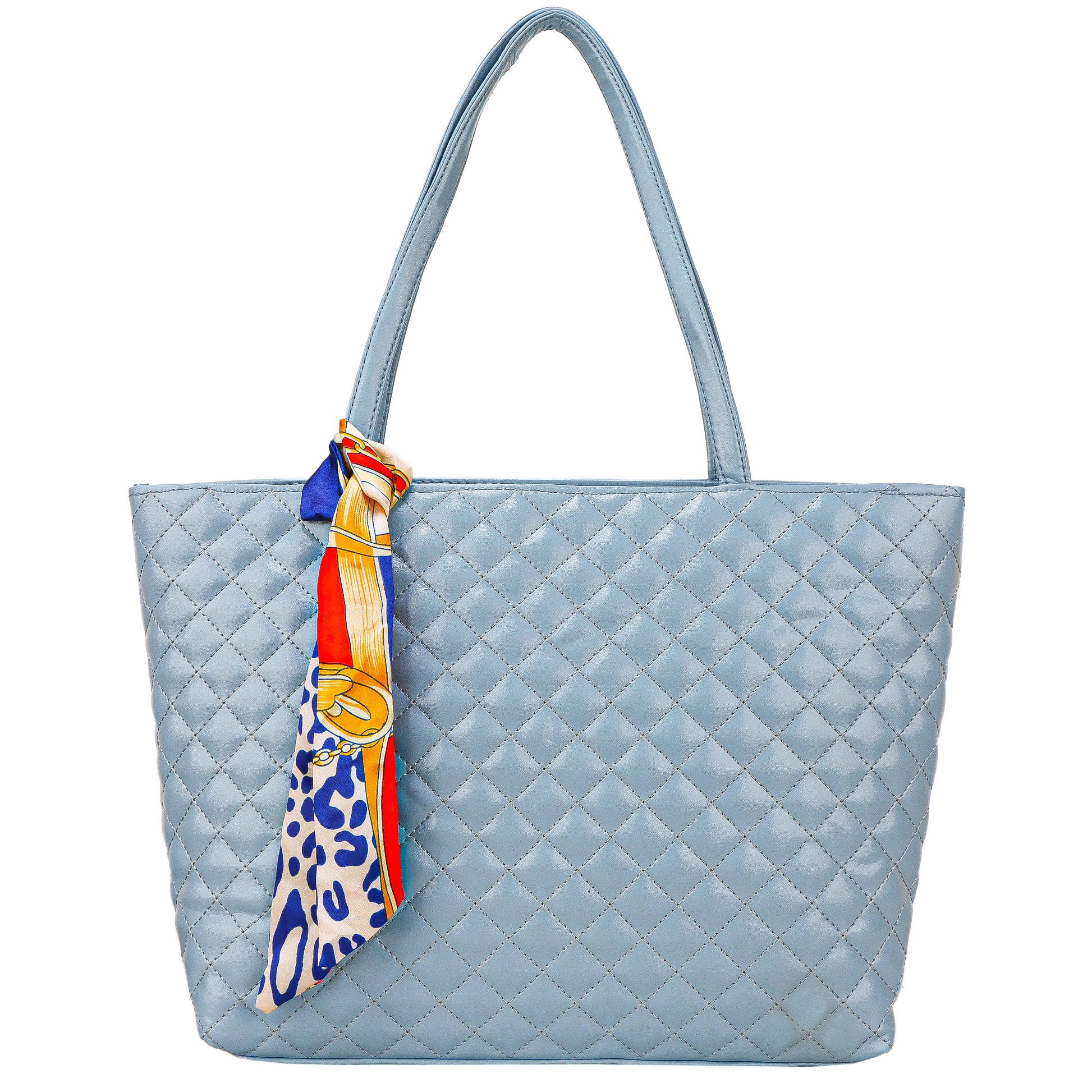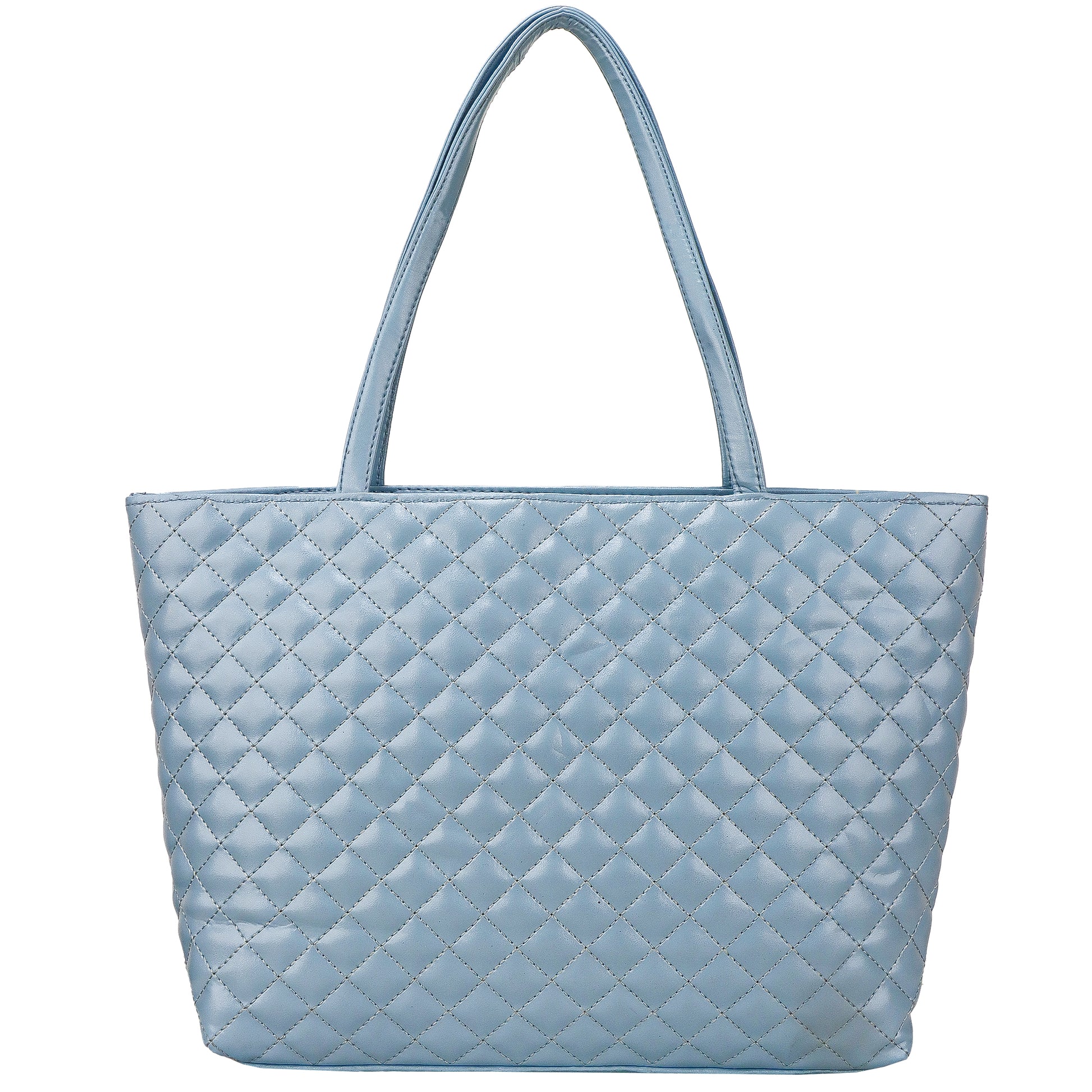 Blossom Vegan Leather Quilted Tote Bag - Blue A0077BLUE