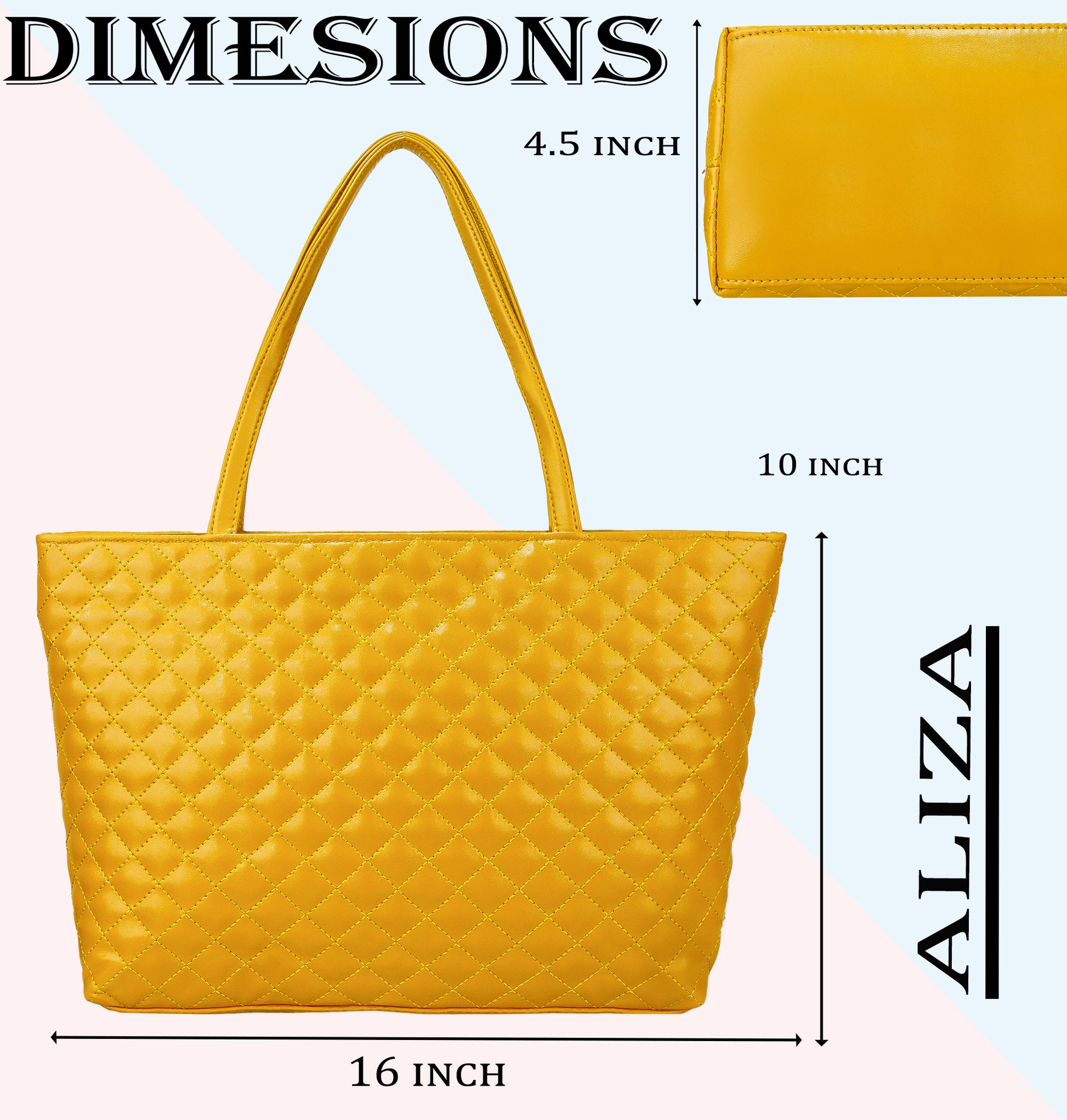 Blossom Vegan Leather Quilted Tote Bag - Yellow A0077YELLOW