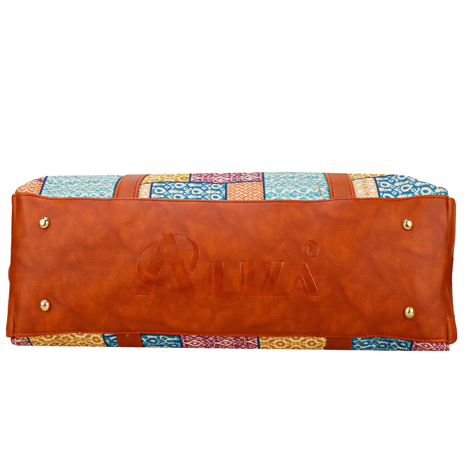 Design: 15 Inches laptop compatible Handbag with attractive floral print on canvas material and contrast with brown vegan leather handles and detailing stripes. Heavy duty stainless accessories like zipper and handle square hooks.
